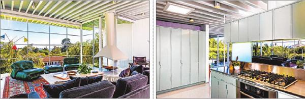 The flat-roofed residence sits on about a third of an acre and has aswimming pool with a spa, a cold plunge and a sauna. A carport is below the house.