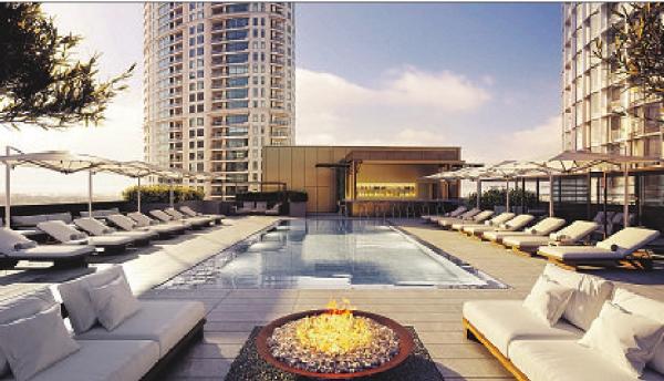 Between the pair of condo towers, which rise behind the hotel like glass monoliths, there are 268 homes complete with floor-toceiling windows and amenities such as marble lobbies, wine cellars, screening rooms, a cabanalined pool and a team of concierges, butlers and valet drivers.
