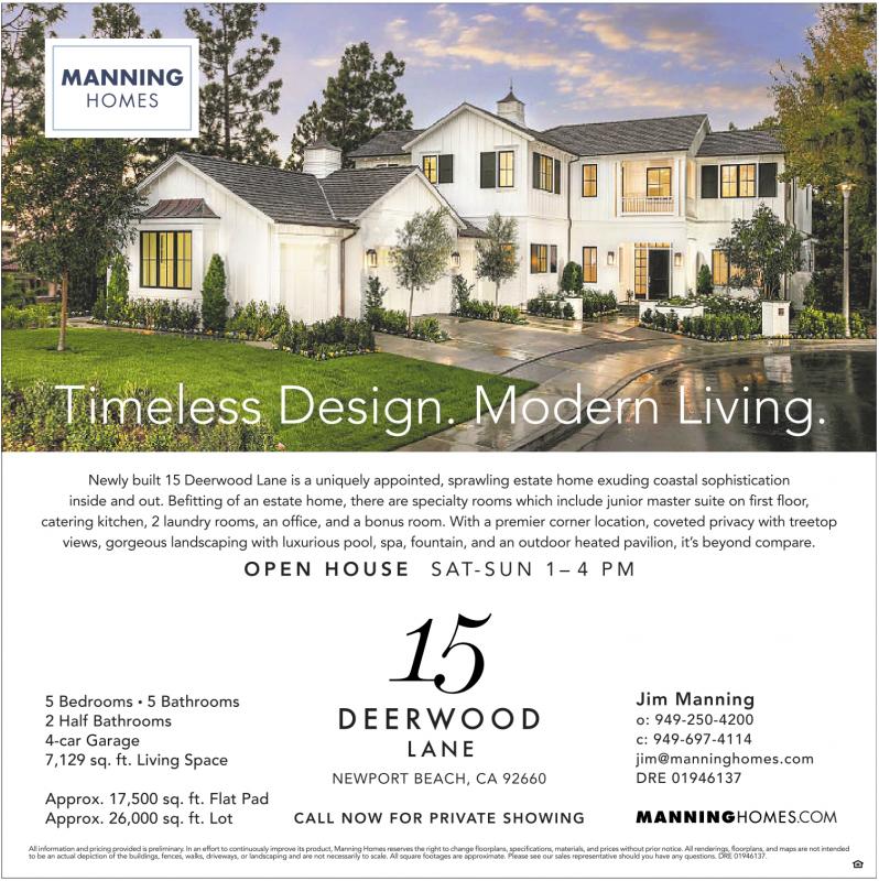 Newly built 15 Deerwood Lane is a uniquely appointed, sprawling estate home exuding coastal sophistication inside and out. Befitting of an estate home, there are specialty rooms which include junior master suite on first floor, catering kitchen, 2 laundry rooms, an office, and a bonus room. With a premier corner location, coveted privacy with treetop views, gorgeous landscaping with luxurious pool, spa, fountain, and an outdoor heated pavilion, it’s beyond compare.