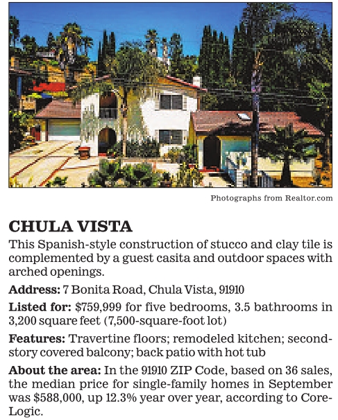 About the area: In the 91910 ZIP Code, based on 36 sales, the median price for single-family homes in September was $588,000, up 12.3% year over year, according to Core- Logic.