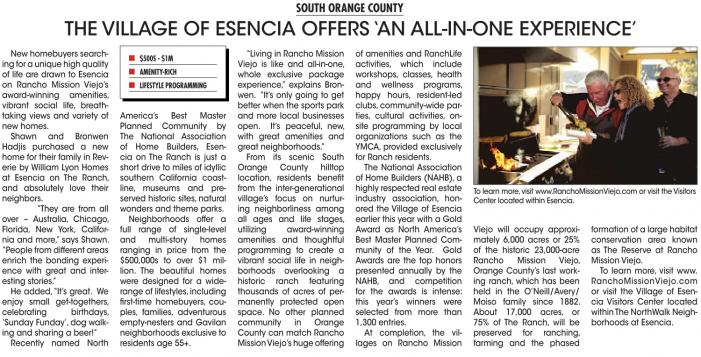 RanchoMissionViejo.com or visit the Village of Esencia Visitors Center located within The NorthWalk Neighborhoods at Esencia.