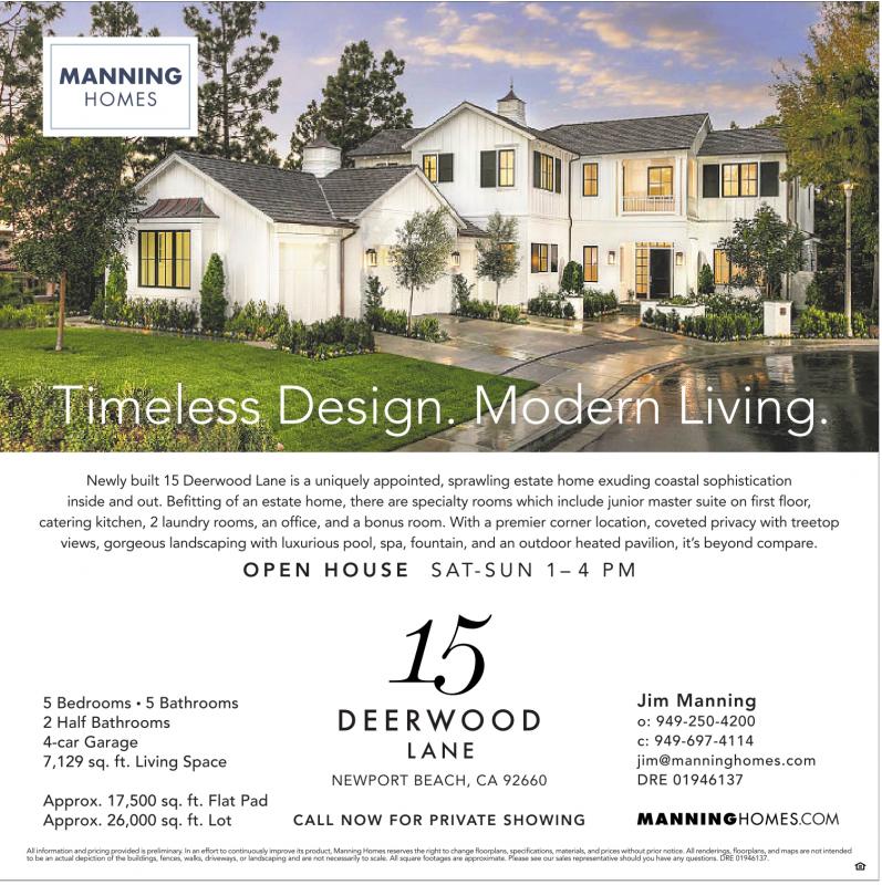 Newly built 15 Deerwood Lane is a uniquely appointed, sprawling estate home exuding coastal sophistication inside and out. Befitting of an estate home, there are specialty rooms which include junior master suite on first floor, catering kitchen, 2 laundry rooms, an office, and a bonus room. With a premier corner location, coveted privacy with treetop views, gorgeous landscaping with luxurious pool, spa, fountain, and an outdoor heated pavilion, it’s beyond compare.