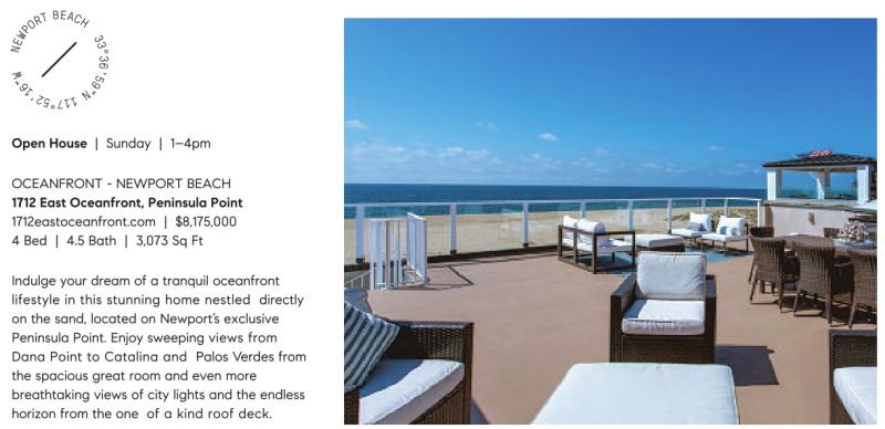 OCEANFRONT - NEWPORT BEACH 1712 East Oceanfront, Peninsula Point 1712eastoceanfront.com | $8,175,000 4 Bed | 4.5 Bath | 3,073 Sq Ft