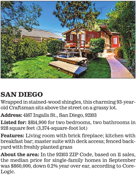 SAN DIEGO Wrapped in stained-wood shingles, this charming 93-yearold Craftsman sits above the street on a grassy lot.