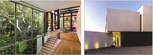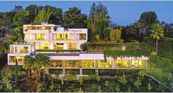 Features: Open-concept floor plan; floor-to-ceiling glass doors; stone, wood and glass wall finishes; chef’s kitchen; spa/steam room; library; screening room; rooftop deck; swimming pool; Japanese-inspired gardens