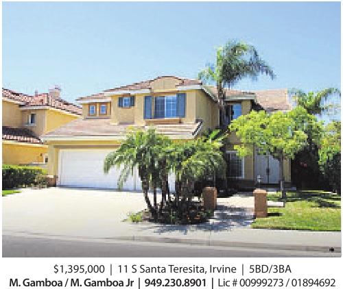 $1,395,000 | 11SSanta Teresita, Irvine | 5BD/3BA M. Gamboa /M.Gamboa Jr | 949.230.8901 | Lic #00999273/01894692