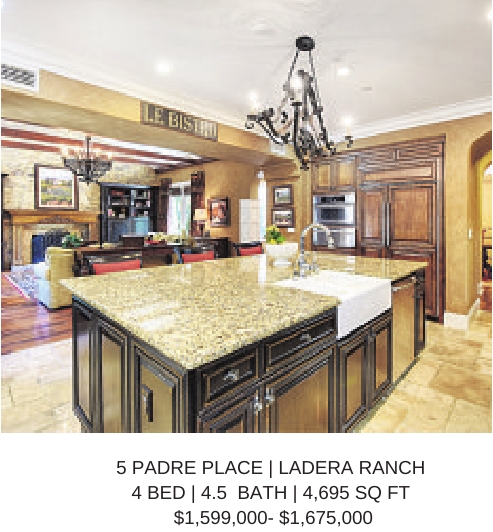 5 PADRE PLACE | LADERA RANCH 4 BED | 4.5 BATH | 4,695 SQ FT $1,599,000- $1,675,000