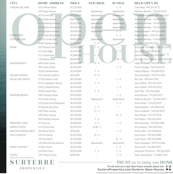 NORTH TUSTIN 11712 Vista Mar $1,999,999 12:30 - 3 — Erica Seigred · 949.230.4416