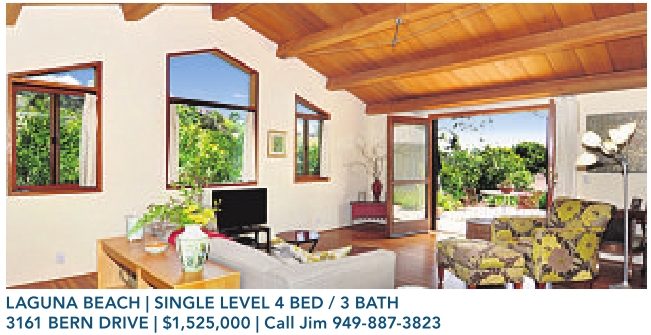 LAGUNA BEACH | SINGLE LEVEL 4 BED / 3 BATH 3161 BERN DRIVE | $1,525,000 | Call Jim 949-887-3823