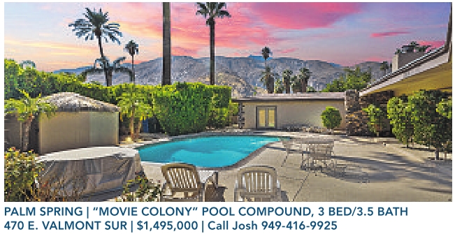 PALM SPRING | “MOVIE COLONY” POOL COMPOUND, 3 BED/3.5 BATH 470 E. VALMONT SUR | $1,495,000 | Call Josh 949-416-9925