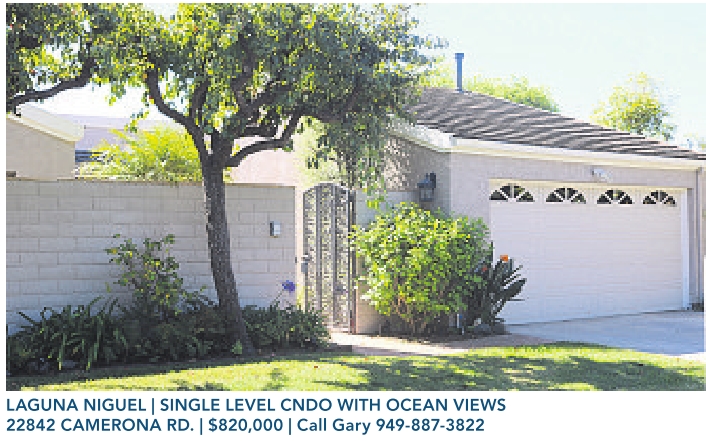LAGUNA NIGUEL | SINGLE LEVEL CNDO WITH OCEAN VIEWS 22842 CAMERONA RD. | $820,000 | Call Gary 949-887-3822