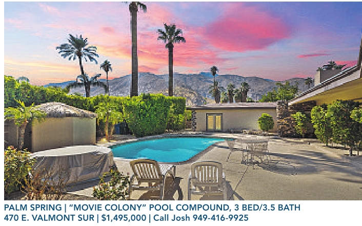 PALM SPRING | “MOVIE COLONY” POOL COMPOUND, 3 BED/3.5 BATH 470 E. VALMONT SUR | $1,495,000 | Call Josh 949-416-9925