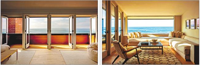 fireplace and an Italian kitchen. Walls of glass brighten the common