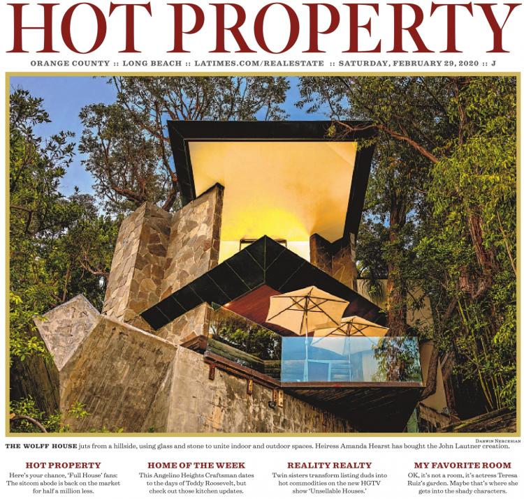 Darwin Nercesian THE WOLFF HOUSE juts from a hillside, using glass and stone to unite indoor and outdoor spaces. Heiress Amanda Hearst has bought the John Lautner creation.