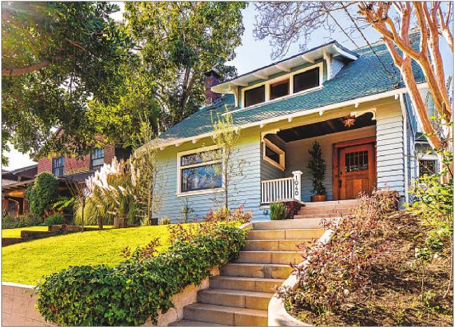 This Craftsman home in Angelino Heights dates to 1905 — as Theodore Roosevelt began his first full term as president. Extensively restored, the handsome two-story retains its 115-year-old millwork and an arched brick fireplace that creates a focal point in the living room. Newer updates are seen in the kitchen and bathrooms, where contemporary cabinetry and tilework pair with period fixtures and hardware.