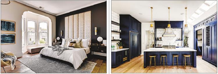 Built in 1883 by Charles Hinkel Lewis, the home spans three stories in the Lower Pacific Heights neighborhood. Inside, there’s a living room with a marble fireplace, a lounge with built-ins, a den with a wet bar and a sunny dining area. In the kitchen, which sports an island, royal blue cabinetry provides visual contrast against subway tile and skylights.