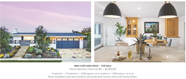 Newly remodeled single-level residence with private beach access shared with Cameo Shores.