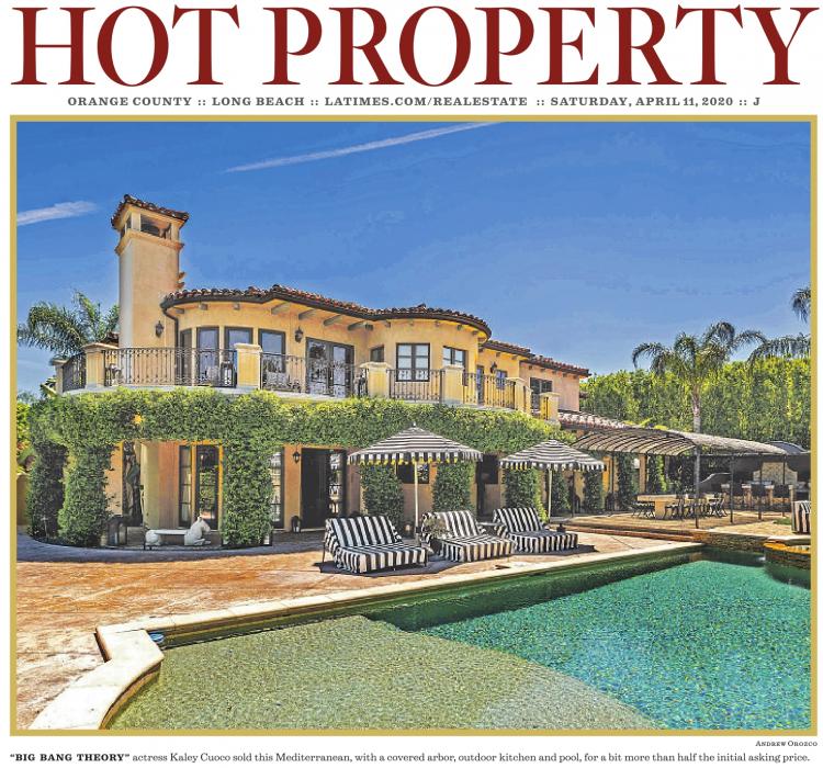 HOT PROPERTY ORANGE COUNTY :: LONG BEACH :: LATIMES.COM/REALESTATE :: SATURDAY, APRIL 11, 2020 :: J Andrew Orozco “BIG BANG THEORY” actress Kaley Cuoco sold this Mediterranean, with a covered arbor, outdoor kitchen and pool, for a bit more than half the initial asking price.