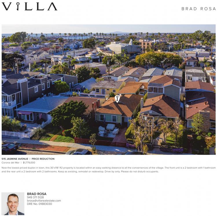 BRAD ROSA 949 371 5128 brosa@villarealestate.com DRE No. 01883030