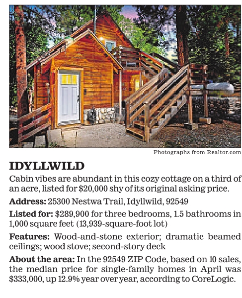 IDYLLWILD Cabin vibes are abundant in this cozy cottage on a third of an acre, listed for $20,000 shy of its original asking price.