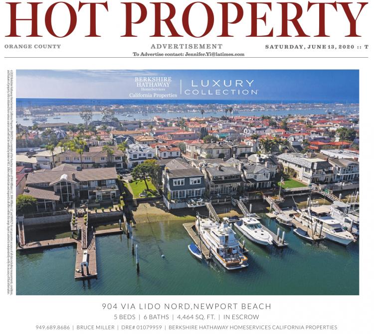 To Advertise contact: Jennifer.Yi@latimes.com SATURDAY, JUNE 13, 2020 :: T 9 0 4 V I A L I D O N O R D, N E W P O RT B E A C H 5 BEDS | 6 BATHS | 4,464 SQ. FT. | IN ESCROW 949.689.8686 | BRUCE MILLER | DRE# 01079959 | BERKSHIRE HATHAWAY HOMESERVICES CALIFORNIA PROPERTIES