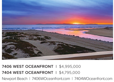 7406 WEST OCEANFRONT | $4,995,000 7404 WEST OCEANFRONT | $4,795,000 Newport Beach | 7406WOceanfront.com | 7404WOceanfront.com