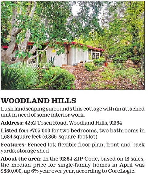 WOODLAND HILLS Lush landscaping surrounds this cottage with an attached unit in need of some interior work.