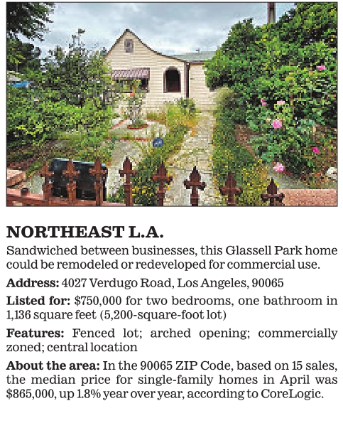 NORTHEAST L.A. Sandwiched between businesses, this Glassell Park home could be remodeled or redeveloped for commercial use.