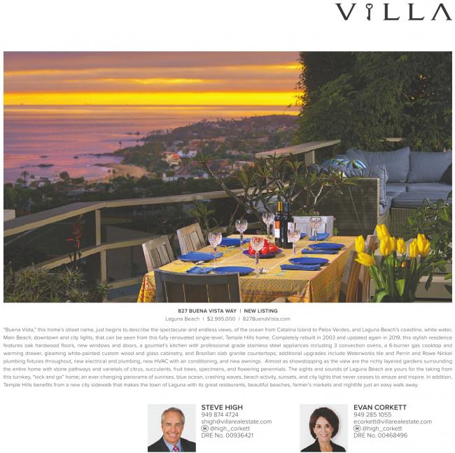 STEVE HIGH 949 874 4724 shigh@villarealestate.com @high_corkett DRE No. 00936421