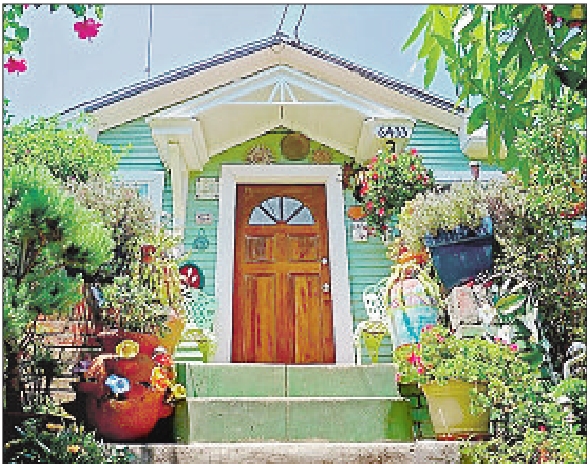 Low Built 102 years ago, this charming bungalow, at right, near Franklin Avenue is surrounded by gardens. A wood front door offsets the turquoise exterior, entering into a single-story interior with floors of hardwood and tile.