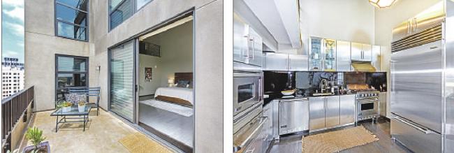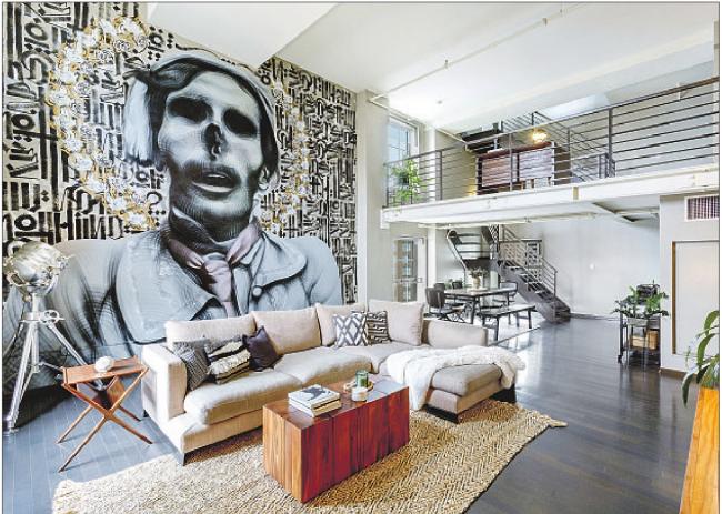 Originally built in the 1920s as a department store, the loft-style residences at the landmark Broadway Hollywood Building offer gallery walls and openconcept space that invite artful interpretation. This particular residence draws the eyes with a floor-to-ceiling mural that was painted by contemporary street artist RETNA. A chrome-clad chef’s kitchen, a lofted office and a private terrace are among other features of the four-level unit.