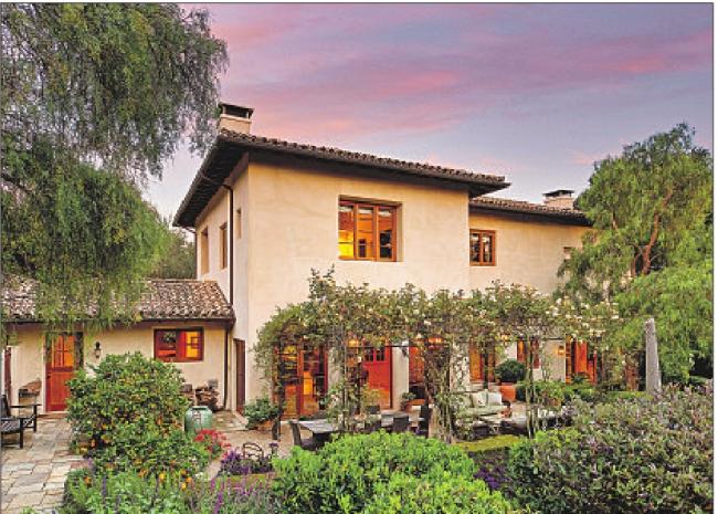 Outside, gardens and mature landscaping surround the home. Pathways lined with decomposed granite wind through various outbuildings including a rose garden, a pool pavilion, an arbor and a potting shed. Amid the backdrop are several dozen mature oaks, Italian cypress and pepper trees.
