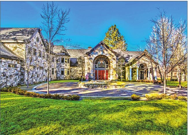 Adramatic gated motor court approaches the stone-clad mansion, which opens to formal living spaces with beamed ceilings, hand-carved fireplaces and ornate chandeliers. Picture windows bring views of the water into the living room, dining room and kitchen.