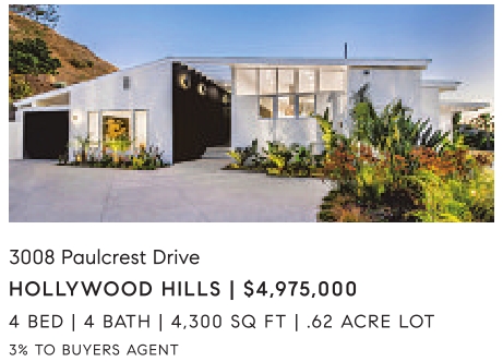 3008 Paulcrest Drive HOLLYWOOD HILLS | $4,975,000 4 BED | 4 BATH | 4,300 SQ FT | .62 ACRE LOT