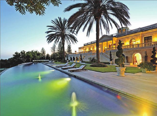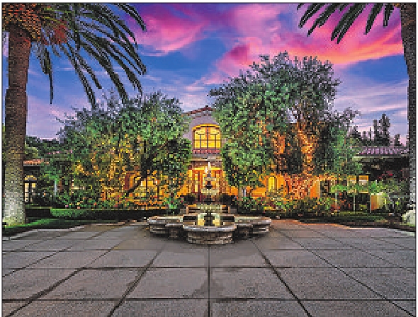 Across 2.6 acres, the amenityloaded home with a Mediterranean style has a custom pool and spa, a cabana and a sports court all surrounded by manicured lawns and stone patios.