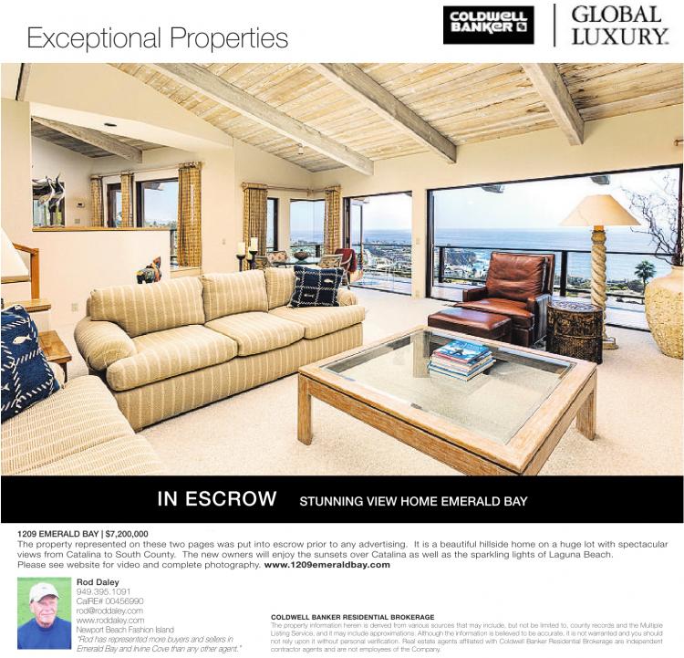 Exceptional Properties IN ESCROW STUNNING VIEW HOME EMERALD BAY ICONIC SANDFRONT 1209 1041 EMERALD MARINE DRIVE, BAY | $7,200,000 NORTH LAGUNA BEACH | $8,990,000 The Wow, property what an opportunity, represented an oceanfront on these two property pages in North was put Laguna intoBeach escrow withprior stairstotoany the sand. advertising. Overlooking It is a beautiful Shaw’s hillside Cove beach, home on newa huge ownerslot willwith experience spectacular the joy views of sandfrom front Catalina living to the toutmost. SouthThey County. will also The benew free towners design will and enjoy construct thea new sunsets homeover of their Catalina choosing, as well subject astothe thesparkling normal City lights of Laguna of Laguna Beach Beach. Design and Review. Please see website for video and complete photography. www.1209emeraldbay.com Rod Daley 949.395.1091 CalRE# 00456990 rod@roddaley.com www.roddaley.com Newport Beach Fashion Island “Rod has represented more buyers and sellers in Emerald Bay and Irvine Cove than any other agent.” COLDWELL BANKER RESIDENTIAL BROKERAGE The property information herein is derived from various sources that may include, but not be limited to, county records and the Multiple Listing Service, and it may include approximations. Although the information is believed to be accurate, itisnot warranted and you should not rely upon it without personal verification. Real estate agents affiliated with Coldwell Banker Residential Brokerage are independent contractor agents and are not employees of the Company.