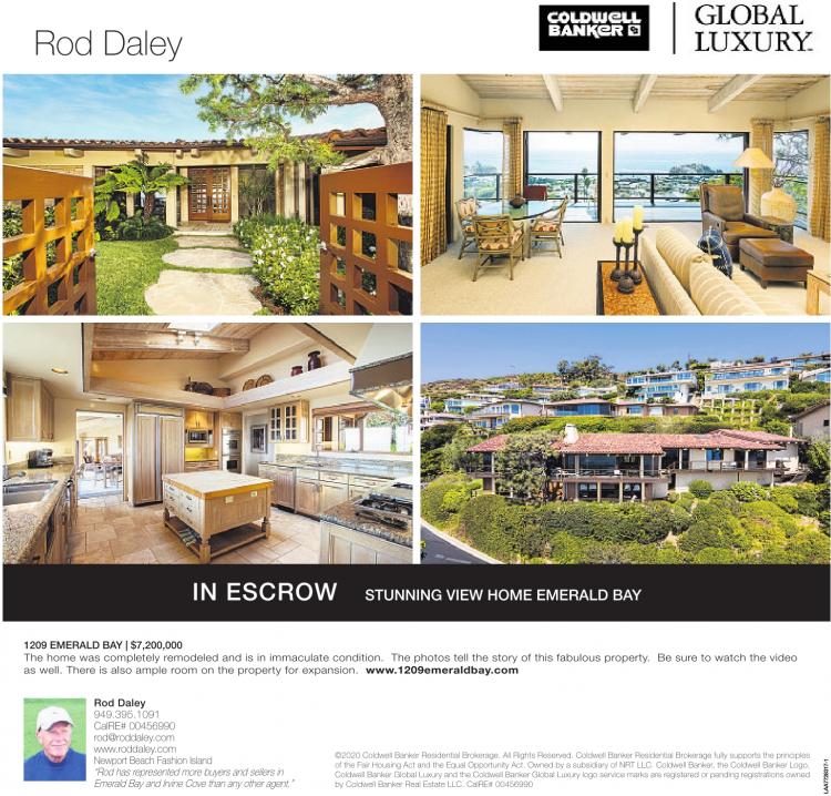 Rod Daley 949.395.1091 CalRE# 00456990 rod@roddaley.com www.roddaley.com Newport Beach Fashion Island “Rod has represented more buyers and sellers in Emerald Bay and Irvine Cove than any other agent.”