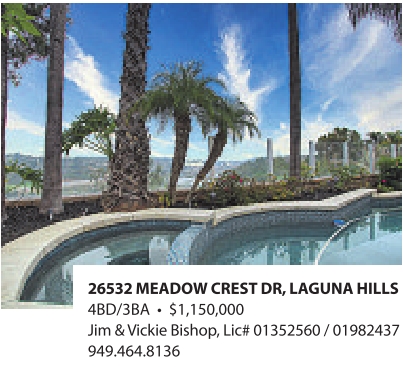 26532 MEADOWCREST DR,LAGUNA HILLS 4BD/3BA • $1,150,000 Jim &VickieBishop,Lic# 01352560 /01982437 949.464.8136