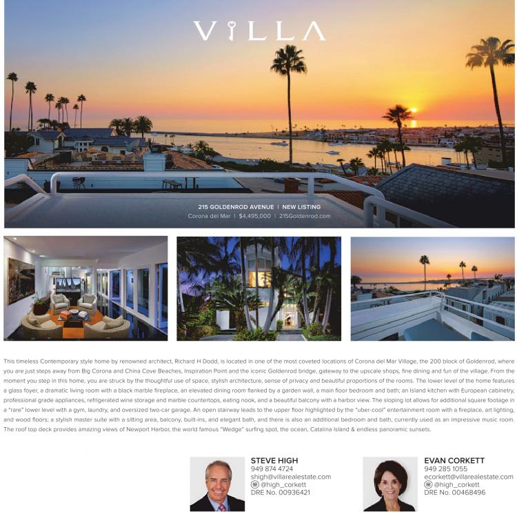 STEVE HIGH 949 874 4724 shigh@villarealestate.com @high_corkett DRE No. 00936421
