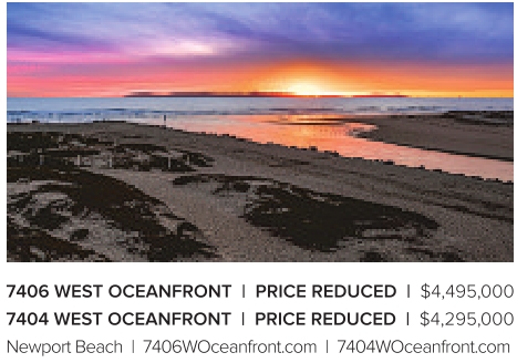 7406 WEST OCEANFRONT | PRICE REDUCED | $4,495,000 7404 WEST OCEANFRONT | PRICE REDUCED | $4,295,000 Newport Beach | 7406WOceanfront.com | 7404WOceanfront.com