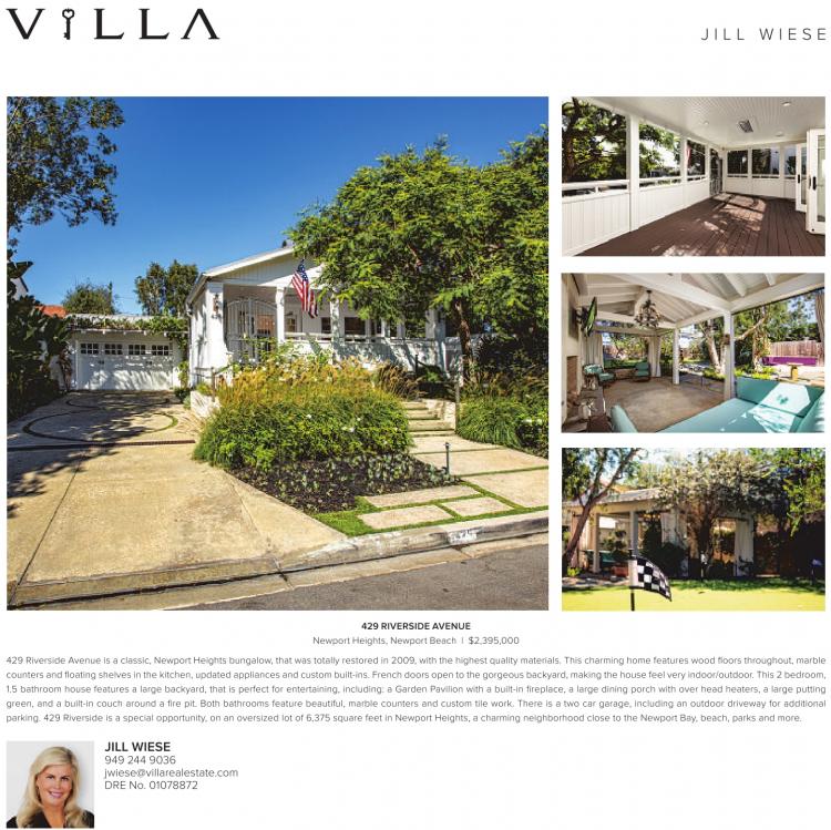 JILL WIESE 949 244 9036 jwiese@villarealestate.com DRE No. 01078872