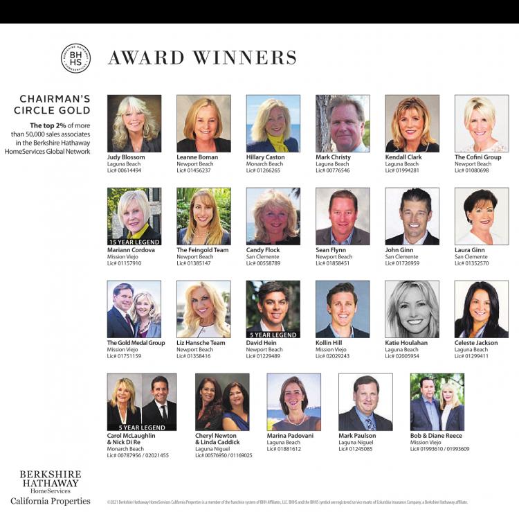 Thetop 2% of more than 50,000 sales associates in the BerkshireHathaway HomeServices Global Network