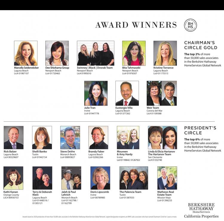 Awards based on 2020 production of morethan 50,000 sales associatesinthe BerkshireHathaway HomeServices Global Network.Legend designation recipients areBHHS sales associateswho have earned Chairman’s Circle for 5years or more.