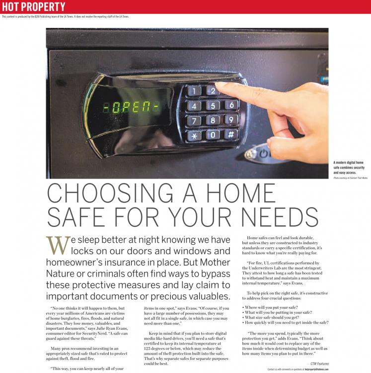 “Noone thinks it will happen to them, but everyyearmillions of Americans arevictims of home burglaries,fires,floods,and natural disasters.Theylosemoney, valuables,and important documents,” says Julie Ryan Evans, consumer editor for SecurityNerd. “A safe can guardagainstthesethreats.”