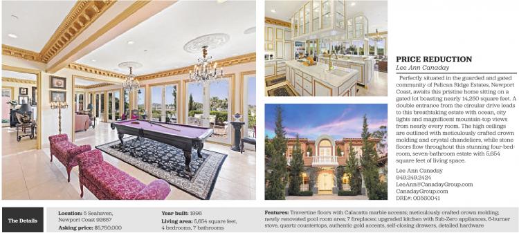 Perfectly situated in the guarded and gated community of Pelican Ridge Estates, Newport Coast, awaits this pristine home sitting on a gated lot boasting nearly 14,250 square feet. A double entrance from the circular drive leads to this breathtaking estate with ocean, city lights and magnificent mountain-top views from nearly every room. The high ceilings are outlined with meticulously crafted crown molding and crystal chandeliers, while stone floors flow throughout this stunning four-bedroom, seven-bathroom estate with 5,654 square feet of living space.