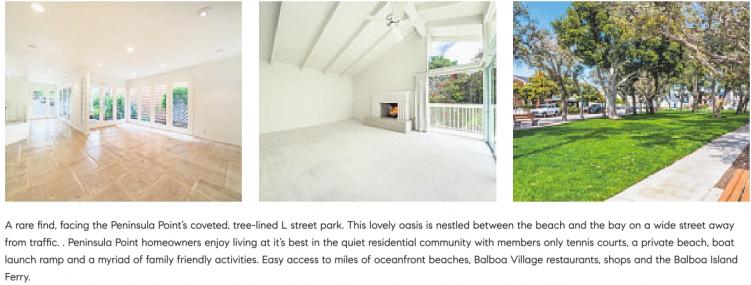 A rare find, facing the Peninsula Point’s coveted, tree-lined L street park. This lovely oasis is nestled between the beach and the bay on a wide street away