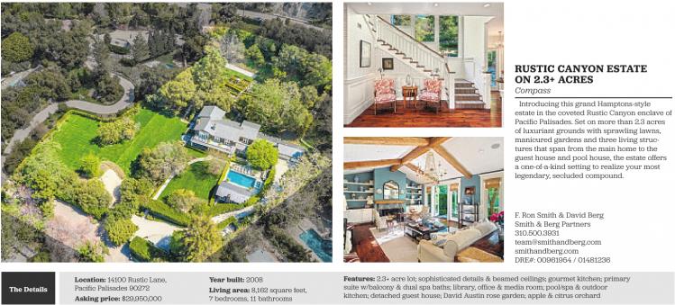 Features: 2.3+ acre lot; sophisticated details & beamed ceilings; gourmet kitchen; primary suite w/balcony & dual spa baths; library, office & media room; pool/spa & outdoor kitchen; detached guest house; David Austin rose garden; apple & citrus orchard