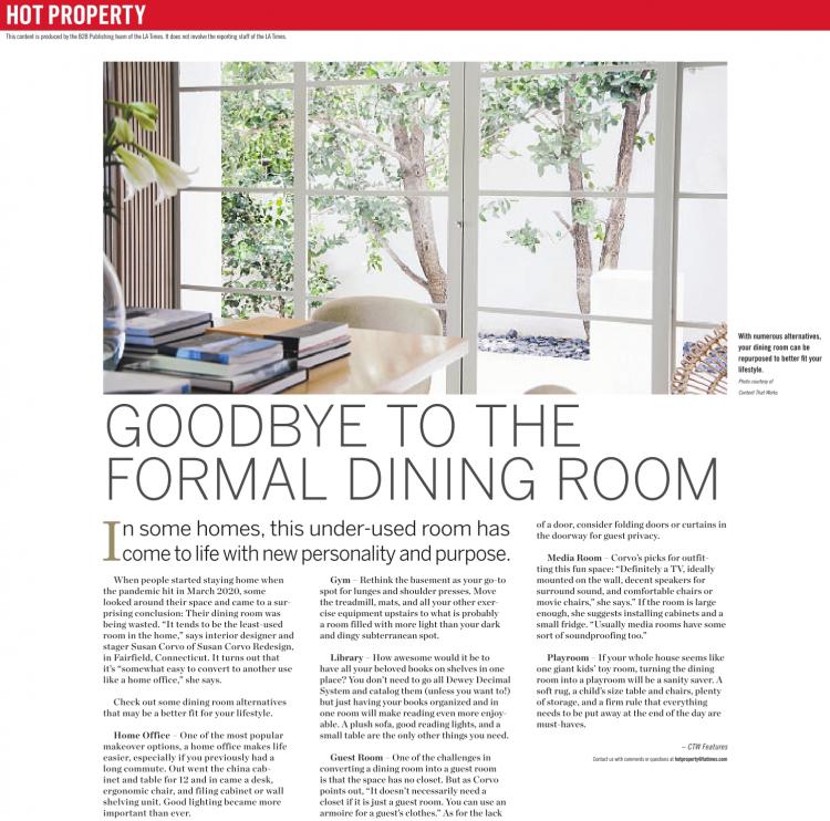 When people started staying home when the pandemic hit in March 2020,some looked around their space and came to asurprising conclusion: Their dining room was being wasted. “It tends to be the least-used room in the home,”saysinteriordesignerand stager Susan CorvoofSusan CorvoRedesign, in Fairfield, Connecticut. It turns out that it’s“somewhat easy to convert to another use likeahome office,”she says.