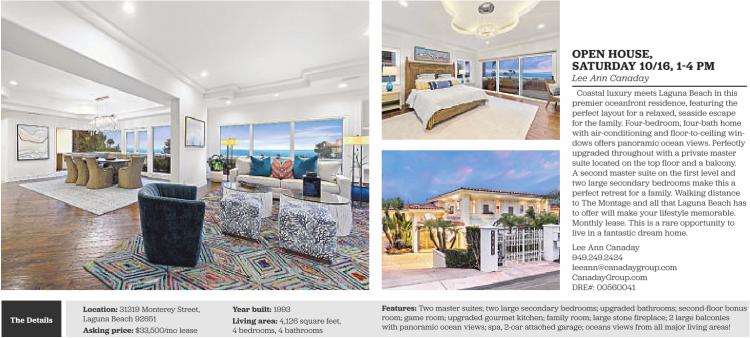 Coastal luxury meets Laguna Beach in this premier oceanfront residence, featuring the perfect layout for a relaxed, seaside escape for the family. Four-bedroom, four-bath home with air-conditioning and floor-to-ceiling windows offers panoramic ocean views. Perfectly upgraded throughout with a private master suite located on the top floor and a balcony. A second master suite on the first level and two large secondary bedrooms make this a perfect retreat for a family. Walking distance to The Montage and all that Laguna Beach has to offer will make your lifestyle memorable. Monthly lease. This is a rare opportunity to live in a fantastic dream home.