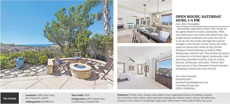 Beautifully upgraded ocean-view house in the gated Reserve South community. With four bedrooms and three full bathrooms, this single-family residence sits near the end of a cul de sac and looks through the canyon straight to the Pacific Ocean. Enjoy the wideopen air space and views in the private backyard which features a built-in BBQ, dining area, and fire pit. The pristine property is located in a 24-hour gated community with amazing amenities nearby, such as a pool, jacuzzi, clubhouse, and park. There’s also easy access to San Clemente’s finest beaches, shopping, restaurants, and schools.
